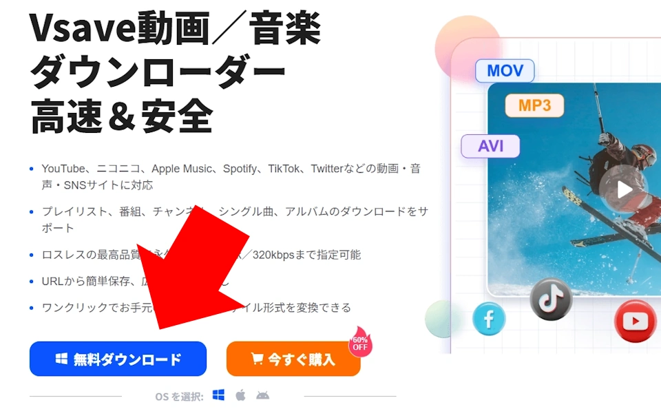 Vsave Video Downloaderは、動画や音声コンテンツを手軽な操作で保存できるダウンロードソフトです。